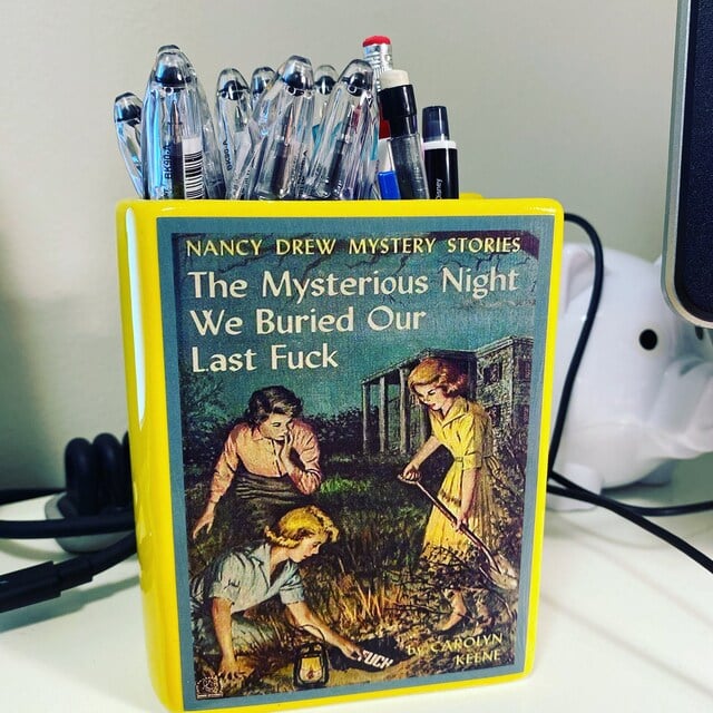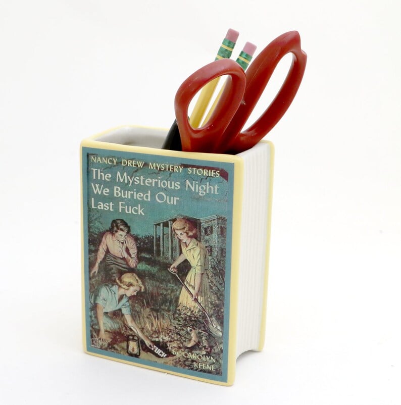 Nancy Drew  book features a parody cover with mature language (first picture is edited, but the F word does appear in total on this item). The Mysterious Night We Buried Our Last Fuck. (Perfect for someone you know who has no more left to give.)
